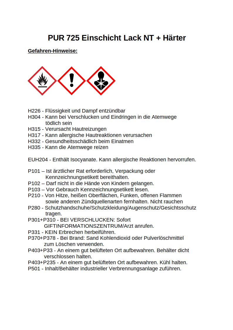 Weiterführende Links zu "2K PUR Einschichtlack 725 NT schnelltrocknend inkl. Härter - Weiß- und Schwarztöne"