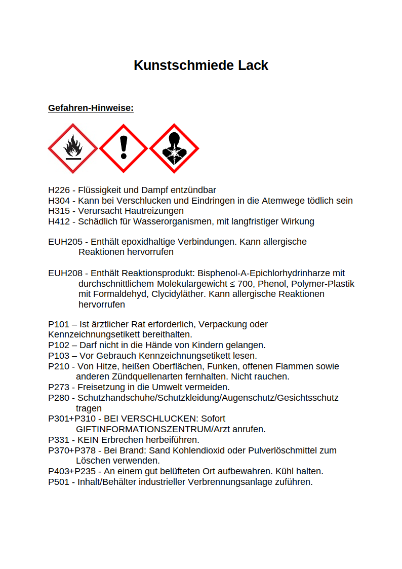 | Anwendungsbereich: | Direktbeschichtung ohne Grundierung für verzinkte Teile, nicht eloxiertes Aluminium, viele Kunststoffe (z. B. Fallrohre aus PVC), die einen dauerhaften, festhaftenden Anstrich erhalten sollen. Kunstschmiedearbeiten, Dachrinnen und Fallrohre, Fahnenmaste, Vordächer, Lampen, Toranlagen, Einfriedungen, Geländer, Treppenaufgänge, Absperrpoller, Werbeschilder, Werbebuchstaben und vieles mehr. | |||
