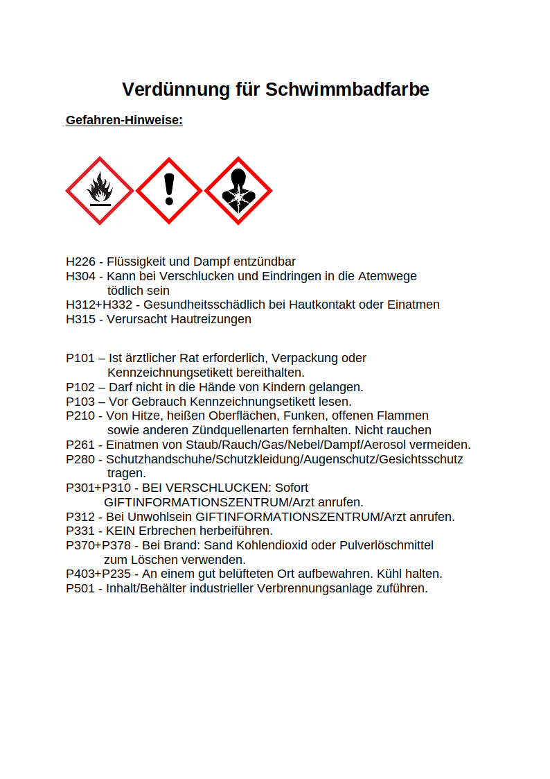 Verdünnung für Schwimmbadfarbe